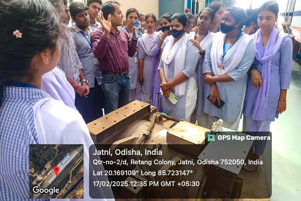 Study Tour Highlights: Electronics & Telecommunications students of DRIEMS Polytechnic exploring the MEMU Shed at Jatani, Khurda, gaining hands-on insights into railway operations and maintenance.